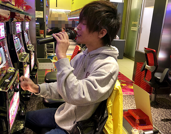 左手にマイクを持っている時も、レバーを叩く右手はつねに忙しい。