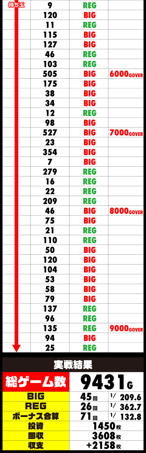 差枚が大幅なプラスとなっただけに、1万回転も達成して優秀な姿をみせてほしかった。