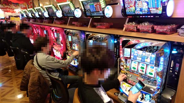 午後の店内では、引き続き「バジリスク~甲賀忍法帖~絆」が大盛況。シマのあちこちで機種の魅力を満喫できているといった笑顔のプレイヤーが見られ、コーナー全体が明るい雰囲気に包まれていた。