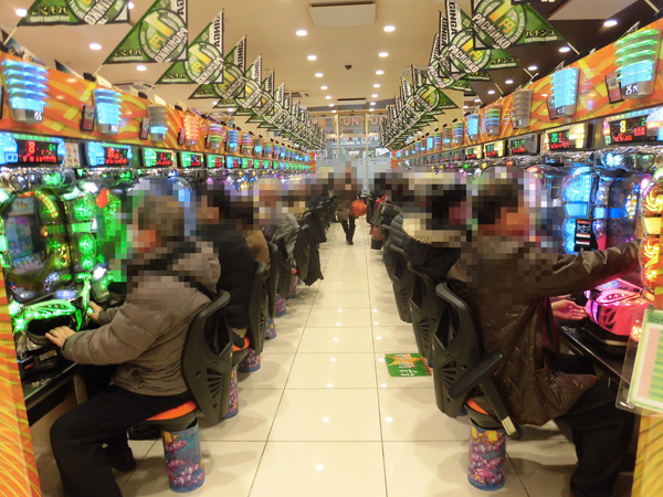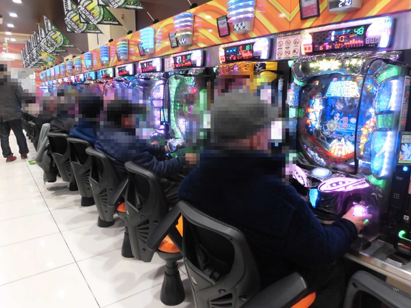 取材を開始した14時ごろのパチンココーナーは、1円の低貸しコーナーが人気。