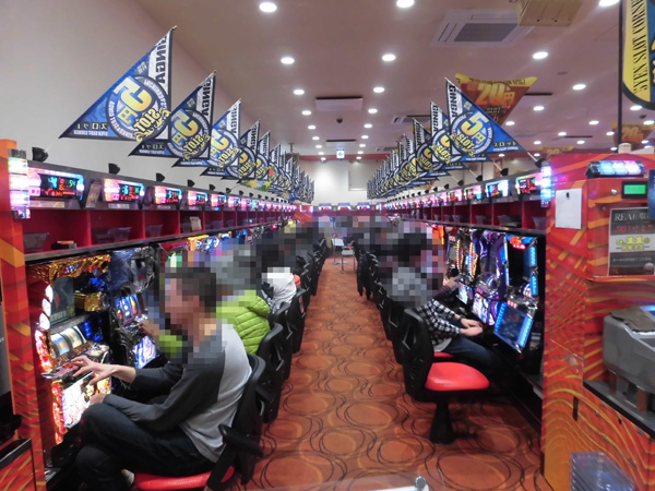 パチンコは年輩プレイヤーが中心、パチスロは幅広い層が遊技を楽しんでおり、店内は明るい雰囲気が広がっていた。