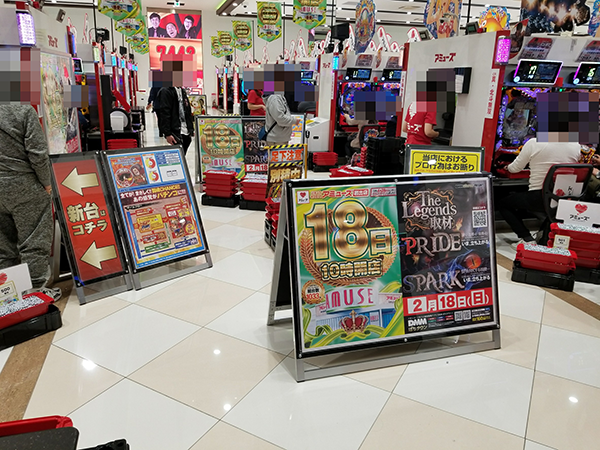 2月18日は大勢のプレイヤーが来店しており、ホール内の随所から活気が感じられた。