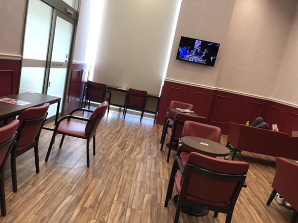 ホール内にはレトロな雰囲気が漂うレストスペースを完備。