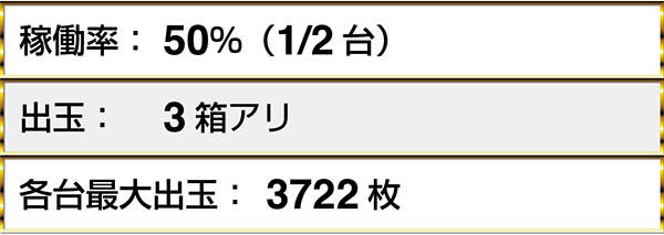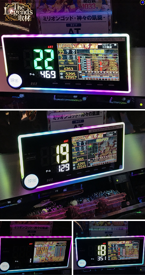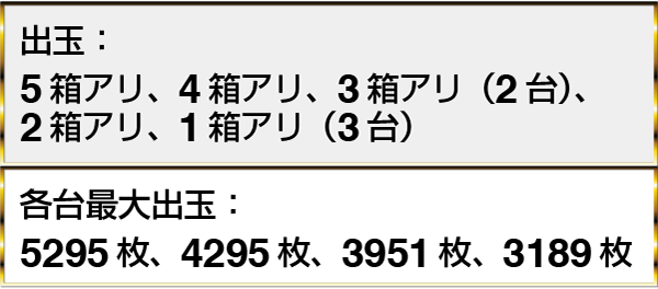 『ミリオンゴッド-神々の凱旋-』の5295枚が取材時にもっとも多い出玉であった。