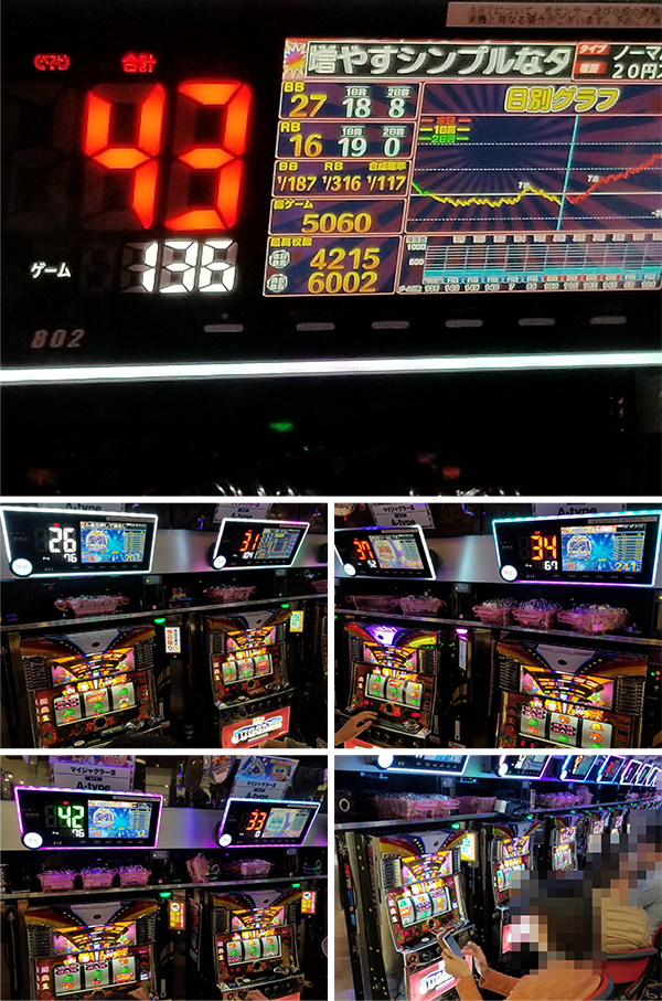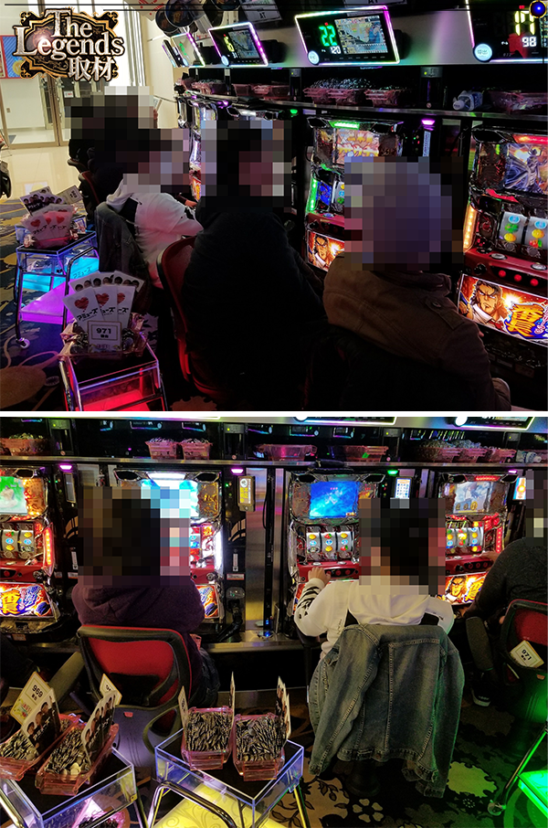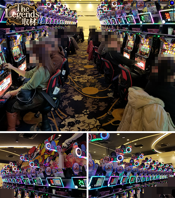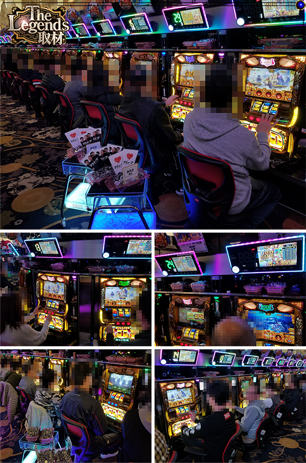 パチスロコーナーの様子をうかがうと、あたり一面ににぎやかな光景が広がっていた。