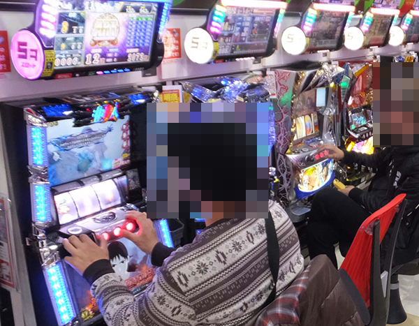 16時頃の1000円/47枚パチスロをみると、「バジリスク~甲賀忍法帖~絆」と「押忍!番長3」に広がる光景が魅力的。プレイヤーのにこやかな表情からは、存分に楽しめていることも伝わってきた。