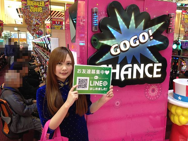 店内をまわって、ぱちタウンのPR活動もおこなったももちゃん。