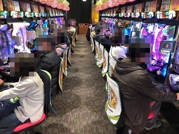 3連休の最終日となった取材日当日は、パチンコ、パチスロを楽しむ多くのプレイヤーでにぎわいを見せていた。