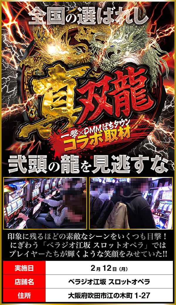 パチスロ専門店の「ベラジオ江坂 スロットオペラ」を舞台に「真双龍」が開幕。