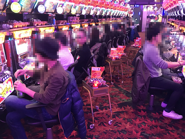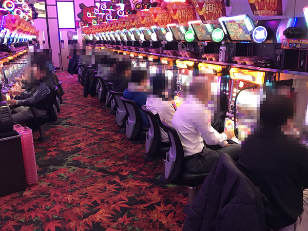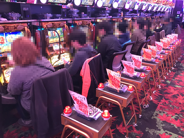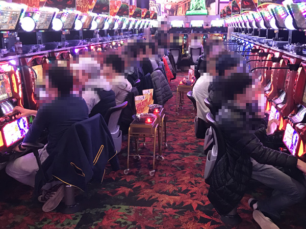 ジャグラーシリーズや「沖ドキ!-30」なども活況で、とにかくパチスロフロア全体が華やかな光景が広がっていた。