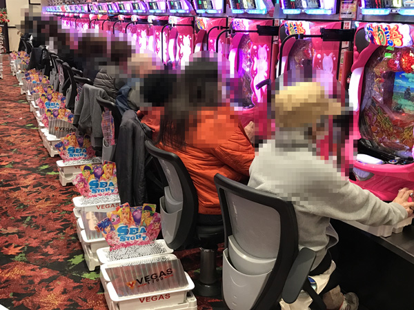 海物語シリーズを中心に豊富な機種構成となっており、老若男女問わず多くのプレイヤーがまったりとパチンコを楽しんでいる様子だった。
