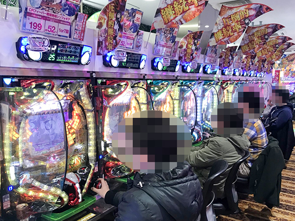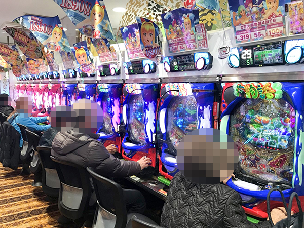 貸し玉料金を問わず、店内では様々な機種で遊技を楽しむプレイヤーの姿を確認できた。