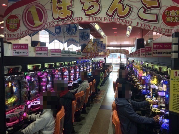 午後の4円パチンコでは、「CRスーパー海物語IN沖縄4」が大盛況。にぎわいが大きいだけでなく、いたるところにプレイヤーの笑顔が輝いていた。