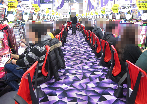 初日となる24日、14時頃の1000円/47枚パチスロでは「バジリスク~甲賀忍法帖~絆」や「押忍!番長3」、「ミリオンゴッド-神々の凱旋-」などが大盛り上がりとなっていた。