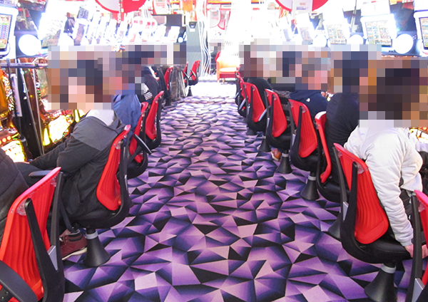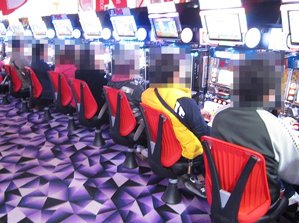前日に、たくさんのプレイヤーに楽しまれていたジャグラーシリーズがこの日も盛況。イキイキとした表情で遊技をおこなう姿があちこちでみられた。