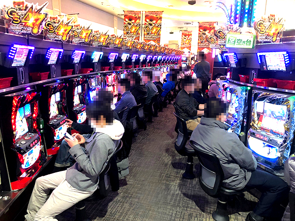 朝の並びには約150名ほどのプレイヤーが集結。各人の明るい表情からは、遊技を心待ちにする同店への期待感が伝わってきた。