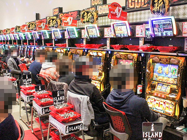 店内には老若男女を問わず多くのプレイヤーが集まっており、パチンコ・パチスロの各シマから大いに盛り上がりが感じられた。