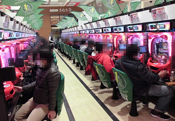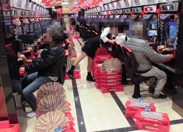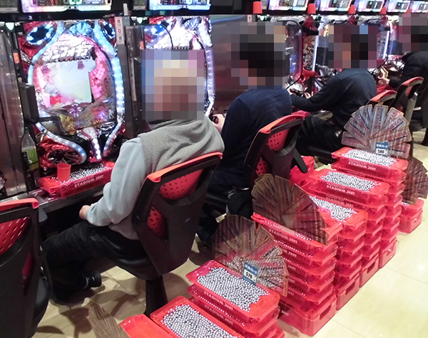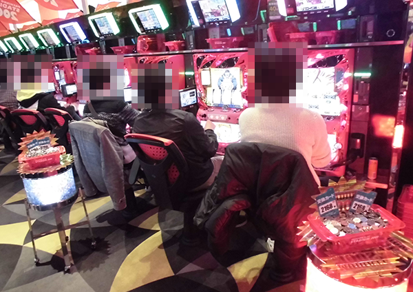 4円パチンコにおいて、とくに盛り上がっていたのは「ぱちんこCR真・北斗無双」。あちこちでプレイヤーが活躍しており、シマ全体がにぎやかな状況となっていた。