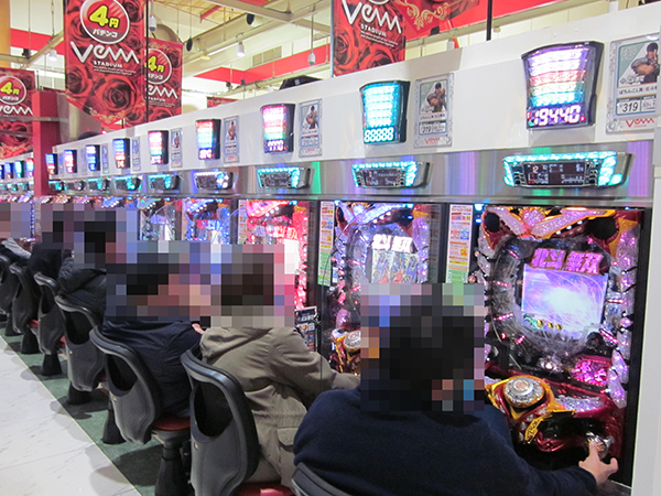 1月28日は厳しい寒さのなかでも、約100名のプレイヤーが来店していた。プレイヤー同士で話している場面がみられるなど、朝イチから雰囲気は明るい。
