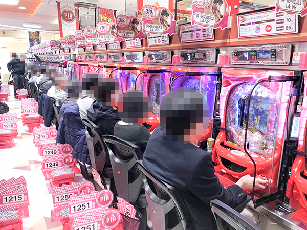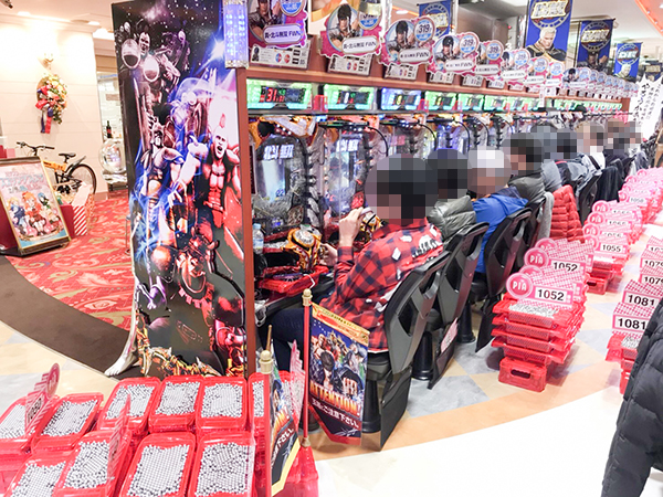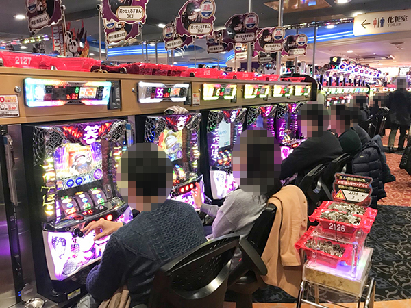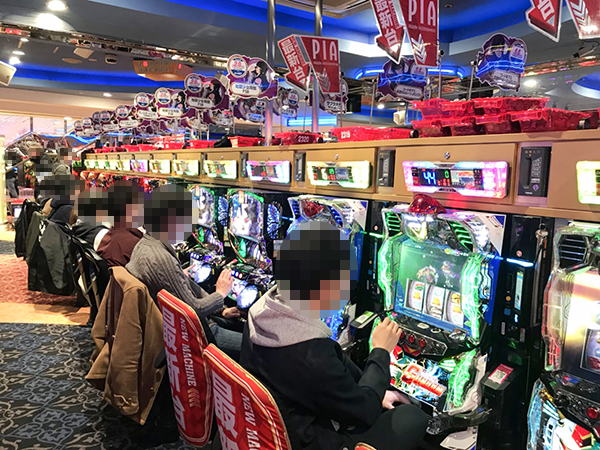 15時過ぎの4円パチンコを見てみると、「CR天龍∞ 7000VS」や「ぱちんこCR真・北斗無双」が空き台も見当たらないほどの盛況ぶり。