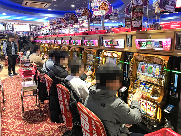 20円パチスロでは「ミリオンゴッド-神々の凱旋-」をはじめ、「パチスロ笑ゥせぇるすまん3〜笑撃のドーン〜」や「押忍!番長3」などが活況。プレイヤーの満足そうな表情から、充実した時間を過ごせることがうかがえた。