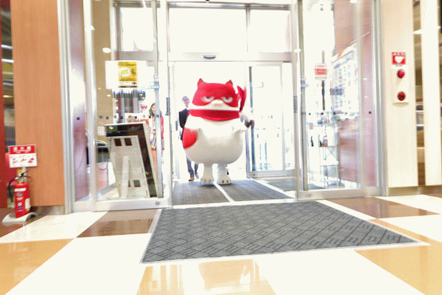 通路を見渡したその場所には、出来立てホヤホヤの巨大なオブジェが出現!これには「にゃんまる」も遠山マネージャーもクリビツ!