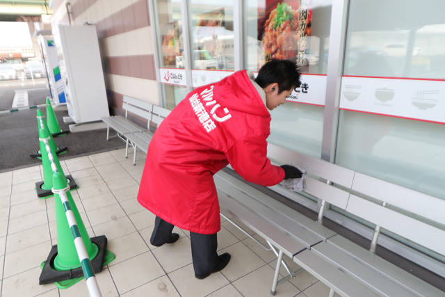 椅子を綺麗に清掃するスタッフ。まごころをファンに