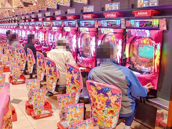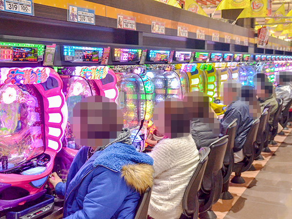 1.111円パチンコも空き台が見当たらないほどの人気。なかでも「CRスーパー海物語IN沖縄4 桜バージョン 新マックス319ver.」などの海物語シリーズで、華麗なパフォーマンスを披露するプレイヤーを多数目撃している。