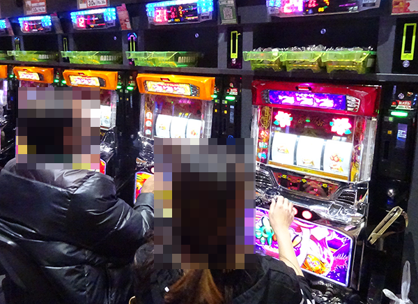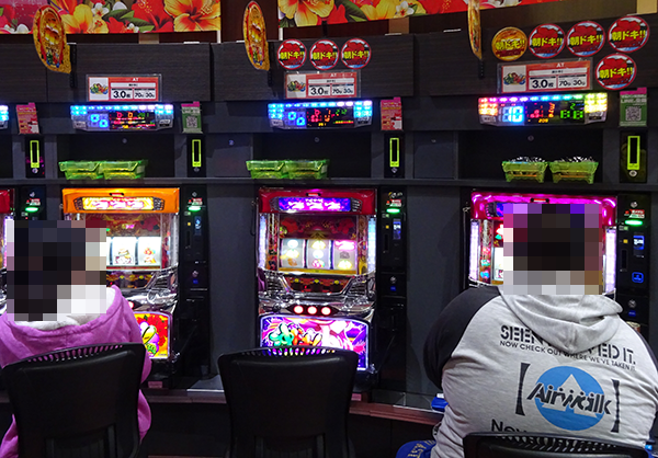 店内をのぞいてみると、パチンコとパチスロの各シマに華やかな光景が広がっていた。