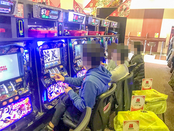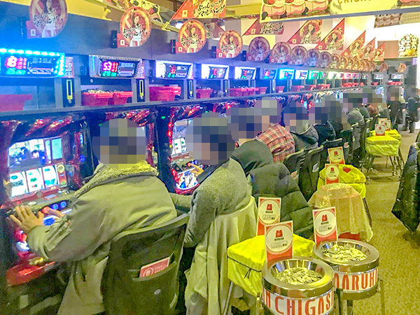 14時半ごろの4円パチンコでは、「CR真・花の慶次2」や「CRスーパー海物語IN沖縄4」、「CR大海物語4」で、機種性能を最大限に引き出すプレイヤーを数多く目撃。シマ全体に華々しい光景が広がっていた。