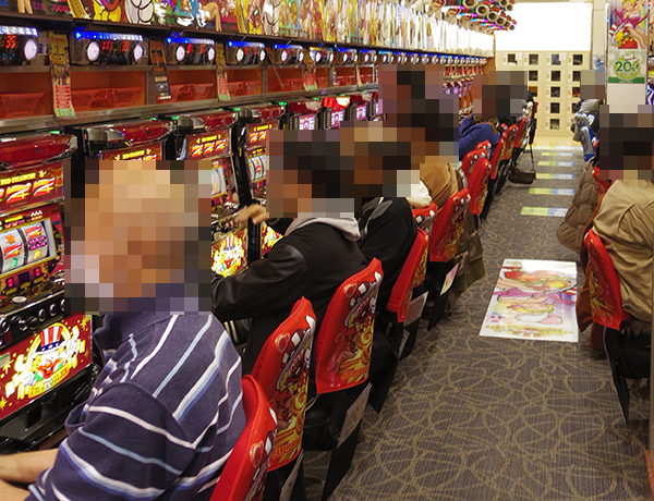 この日も大勢のプレイヤーが訪れており、パチンコとパチスロの各シマに笑顔が広がっていた。