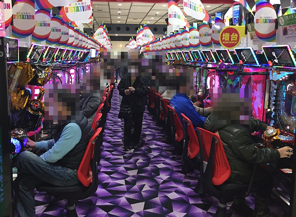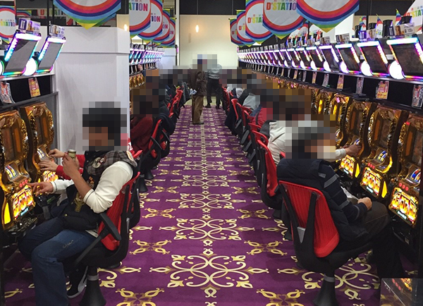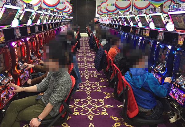 1円パチンコと5円パチスロのどちらも大勢のプレイヤーでにぎわっており、シマ全体から明るいムードが感じられた。