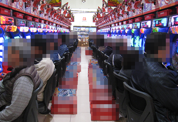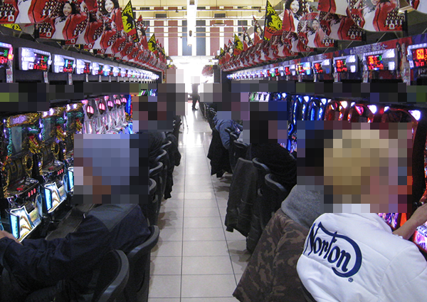 開店してすぐの店内では、パチンコとパチスロの両方が支持を受けていた。