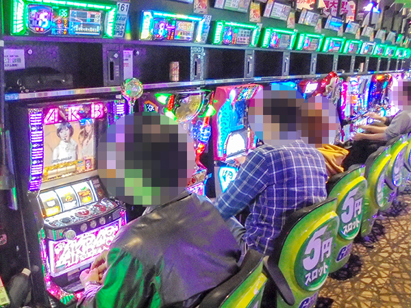 5円パチスロに目を移すと、機種を問わず盛況といった様子。