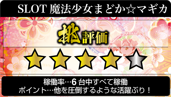 また、「SLOT魔法少女まどか☆マギカ2」をはじめとした5円パチスロの注目度も高く、ホール全体が盛り上がっていたことも好感を抱いたポイントだ。