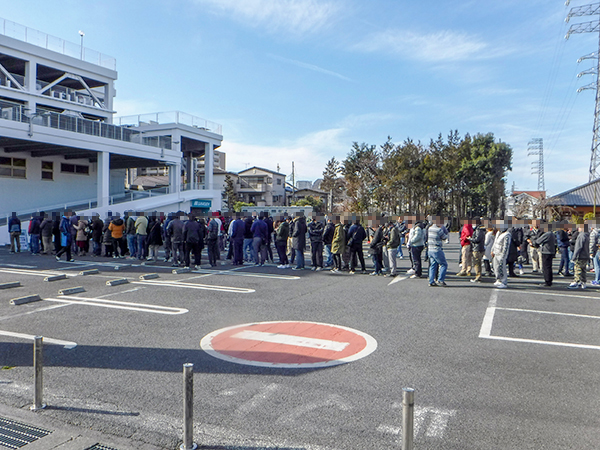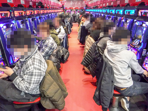 取材当日は開店前から400人前後のプレイヤーが集合。大いににぎやかで、開店時刻が来るのを心待ちにしているようだった。