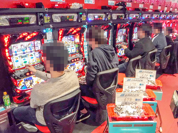14時ごろの4円パチンコでは、「ぱちんこCR真・北斗無双」や「CRフィーバー機動戦士Zガンダム」、「CR真・花の慶次2」が活況。機種の醍醐味を味わうプレイヤーたちの、嬉しそうな表情が印象に残っている。
