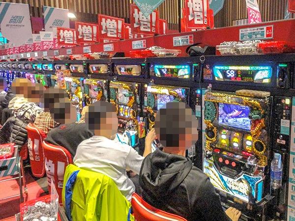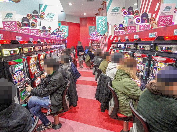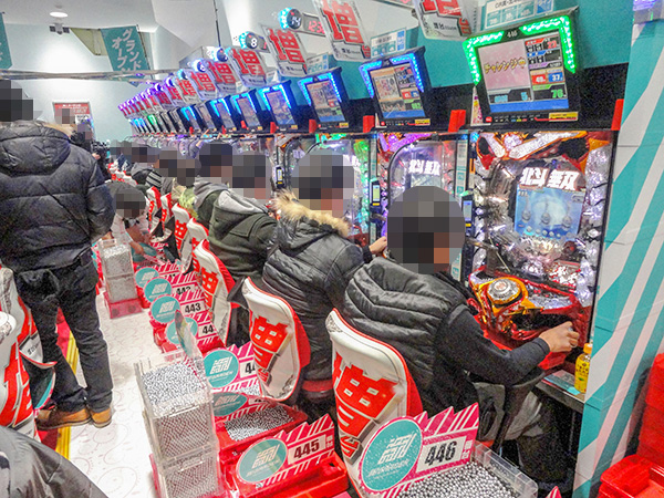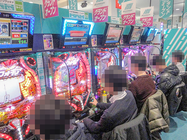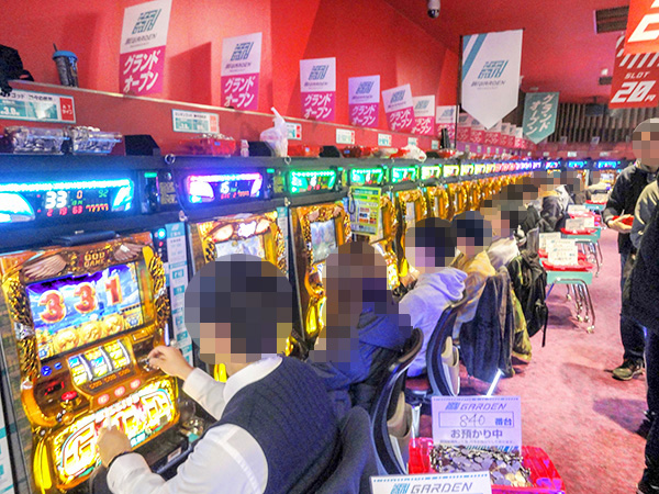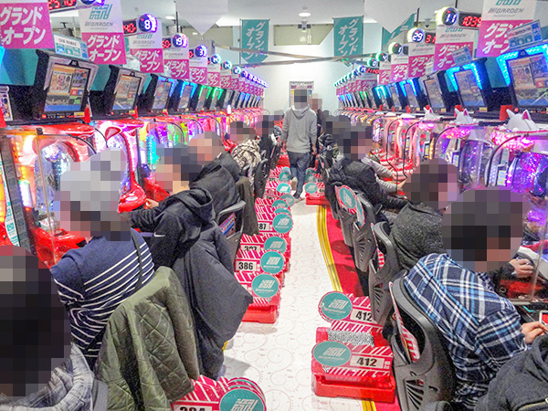 開店直後は、4円パチンコが機種を問わずほぼ満席に。