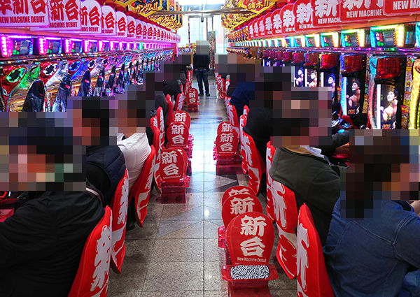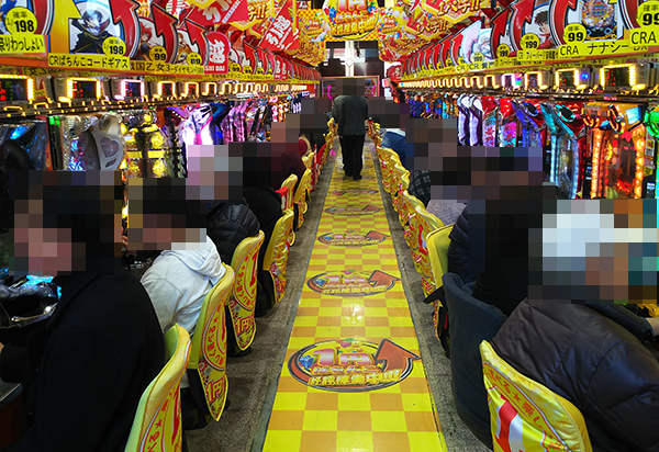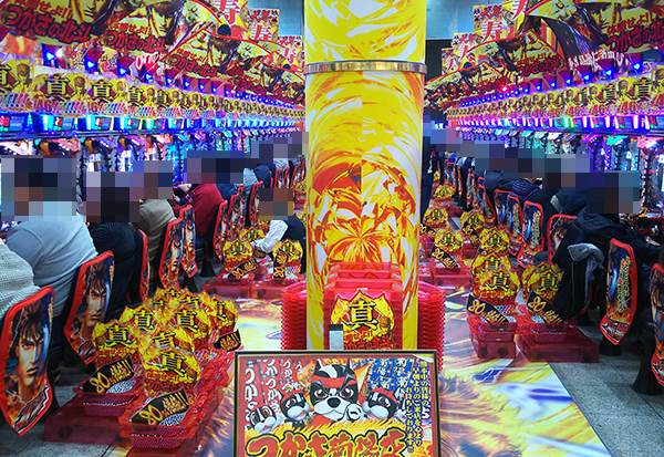16時頃の4円パチンコにおいては、「ぱちんこCR真・北斗無双」が大にぎわいといった状況。