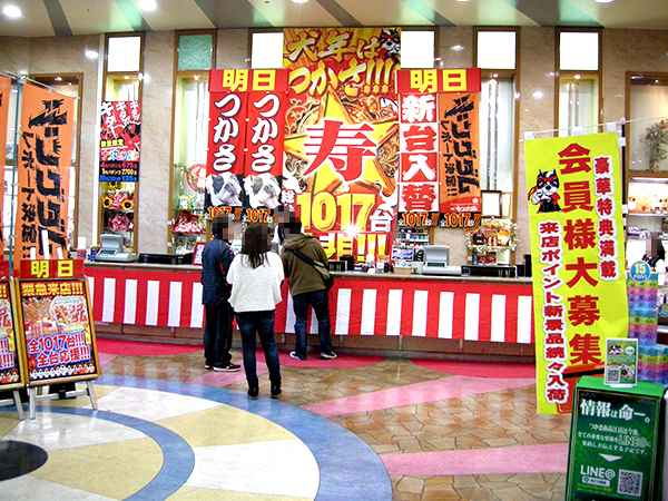 14時頃の4円パチンココーナーを見ると、「CR真・花の慶次2」や「ぱちんこCR真・北斗無双」などで、機種の性能を引き出しているプレイヤーを目撃。周囲の注目を集めており、フロア全体に華やかな光景が広がっていた。