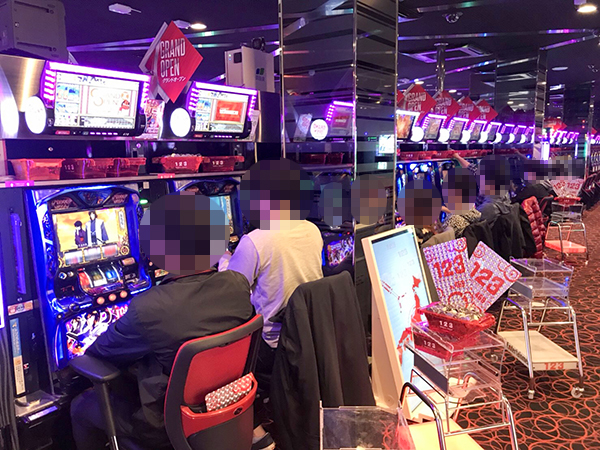 「パチスロ笑ゥせぇるすまん3〜笑撃のドーン〜」や「SLOT魔法少女まどか☆マギカ」、「押忍!番長3」も高稼働となっており、シマ全体が華やかな雰囲気に包まれていた。