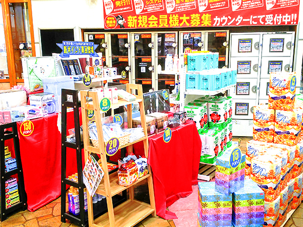景品コーナーには、来店ポイントで交換できるアイテムも豊富に揃っており、プレイヤーから好評を得ていた。