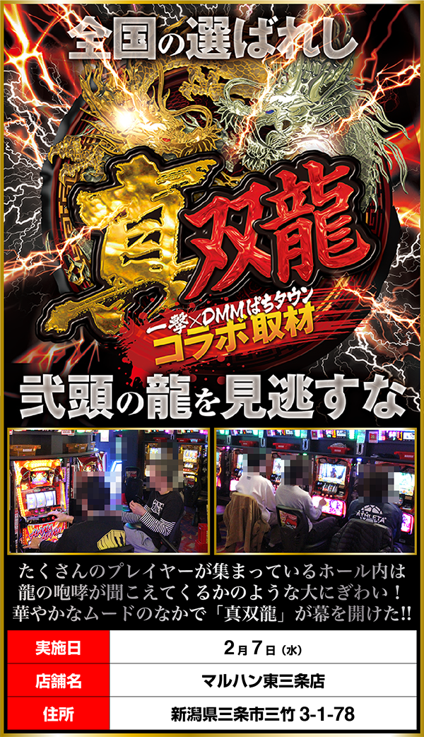 「真双龍」の舞台となったのは、ラインナップが豊富な賞品コーナーやさまざまなドリンクが味わえるカフェなどがある「マルハン東三条店」。