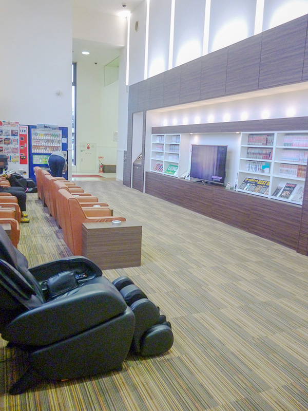 広々としたレストスペースには、幅広いジャンルの漫画本を用意。さらにマッサージチェアも完備しており、ゆっくりと有意義な時間を過ごせそう。