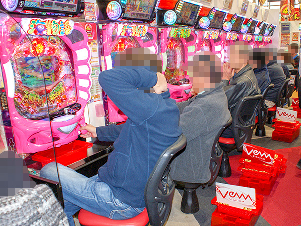 14時過ぎの4円パチンコでは、「CRスーパー海物語IN沖縄4」や「CR大海物語4」などの海物語シリーズが大盛り上がり。プレイヤーたちは心から遊技を楽しんでいるようだった。