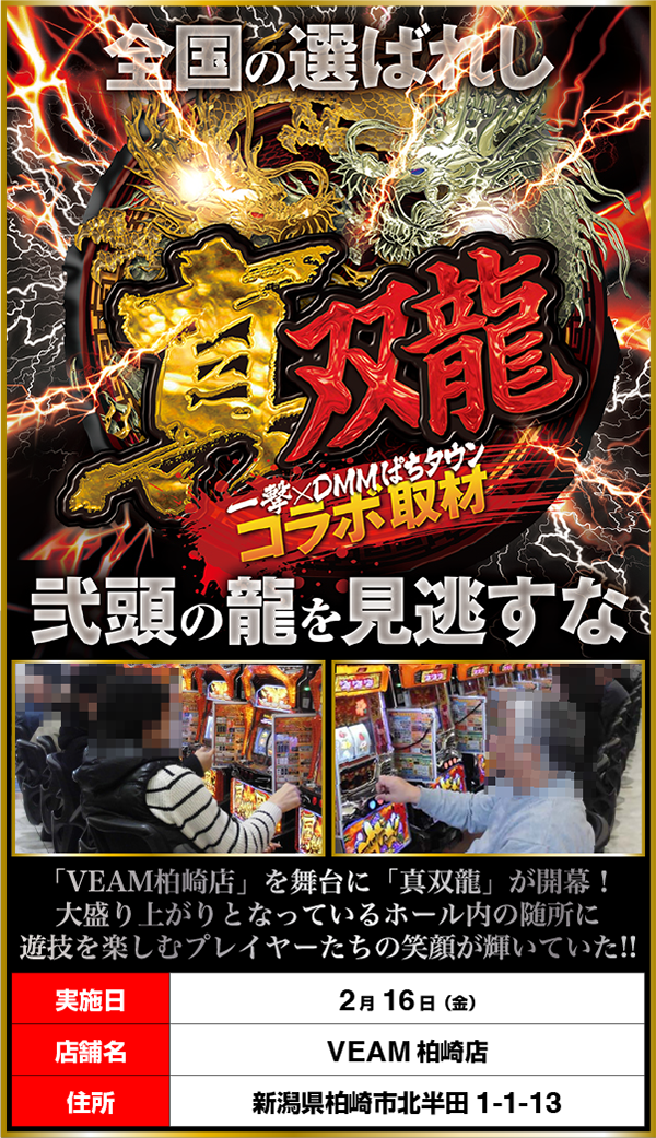「真双龍」の舞台となったのは、白い外壁と赤い看板が特徴的な「VEAM柏崎店」。