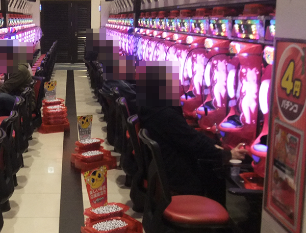 さまざまな機種が支持されている4円パチンコのなかでも、存在感を放っていたのが「ぱちんこCR真・北斗無双」。プレイヤーのイキイキとした表情からは、遊技を満喫していることも伝わってきた。