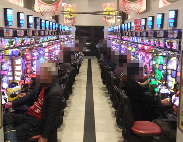 定番の海物語シリーズをはじめ、たくさんの機種に楽しそうな光景が広がっていた。