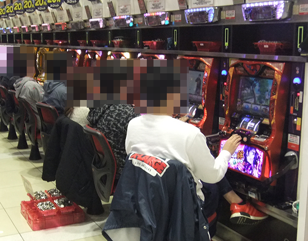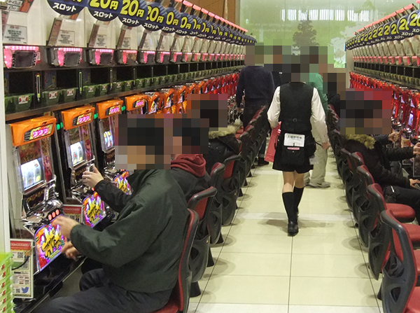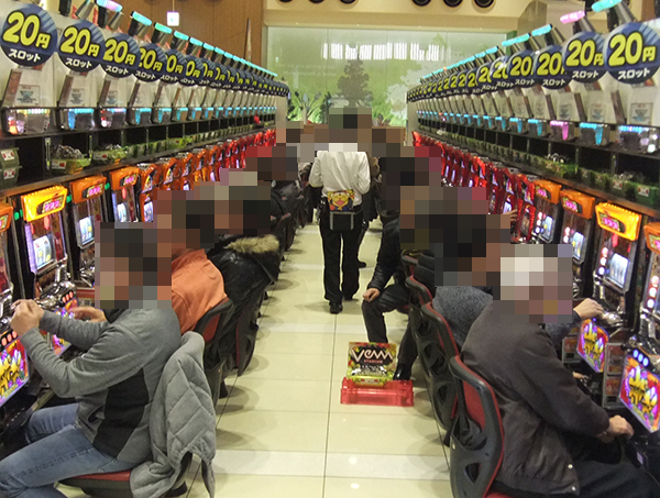 開店してすぐの店内では、20円パチスロに足を運ぶプレイヤーが多数。
