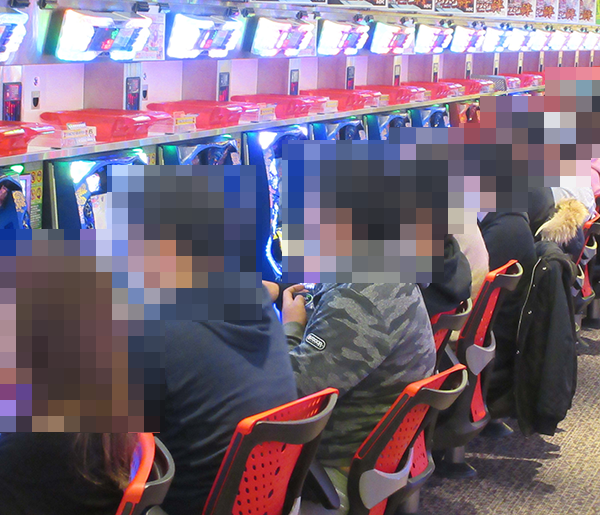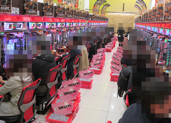 「CR真・花の慶次2」や「CR大海物語4」も空き台がほとんど見当たらないといった状況。